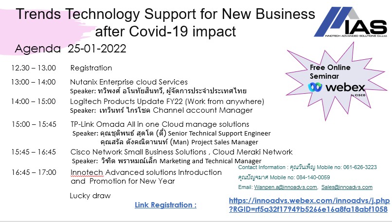 บริษัท อินโนเทค แอดวานซ์ โซลูชั่นส์ จำกัด จะจัดงานสัมนาออนไลน์ ในหัวข้อ